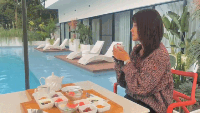 店内还有无边游泳池,清澈的水,倒映在蓝天白云之下,再烦躁的心情都能变得明朗。如果是夏天,还能体验水上嬉戏的乐趣。